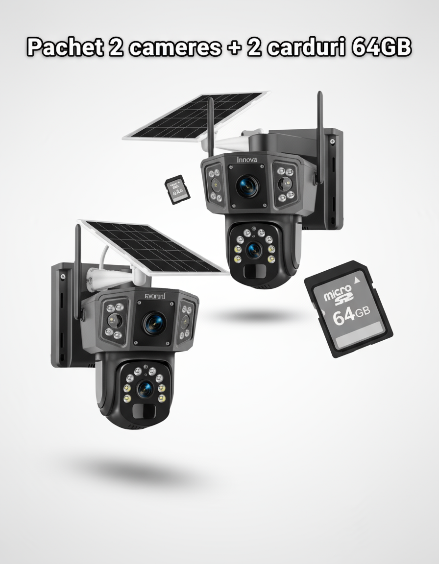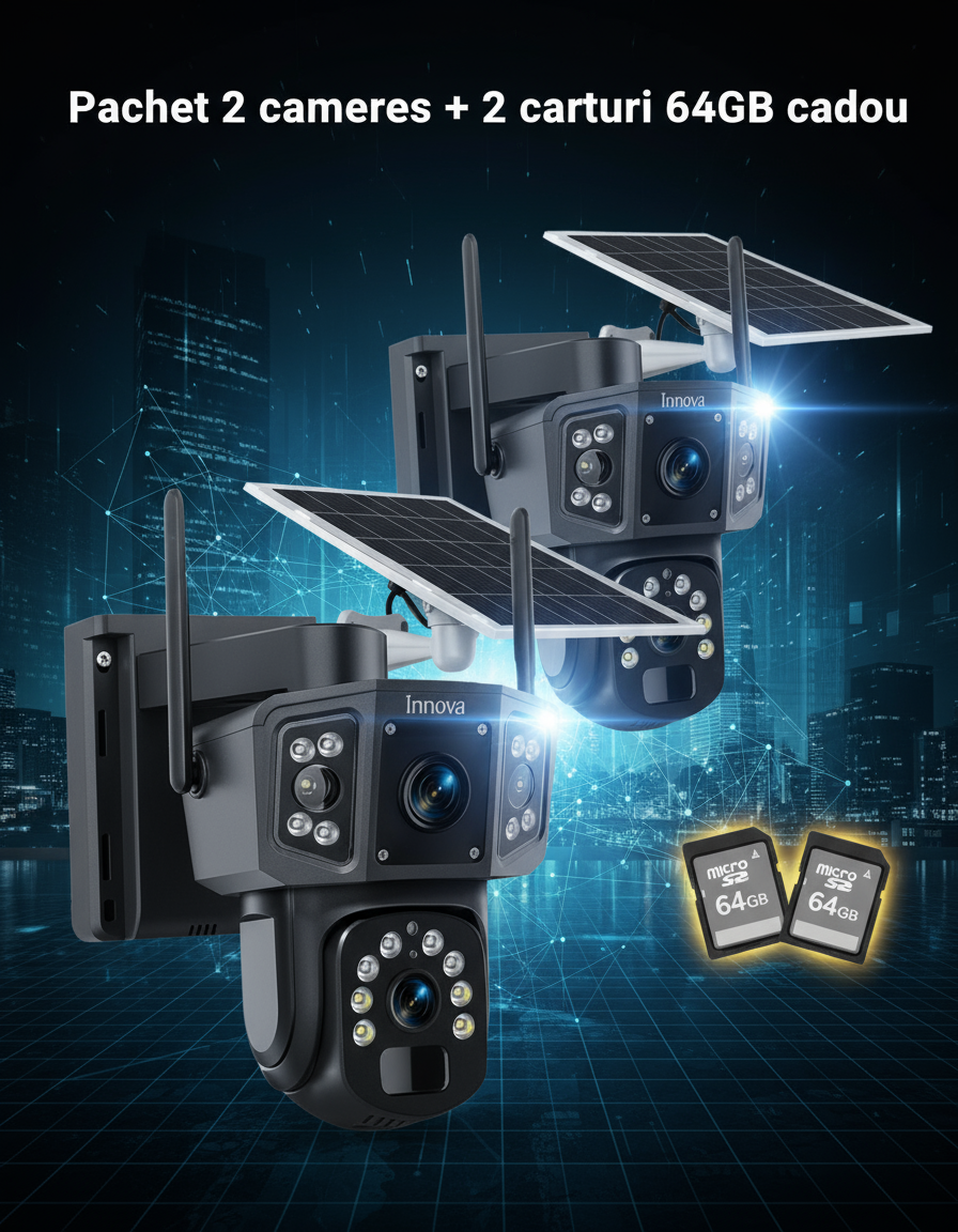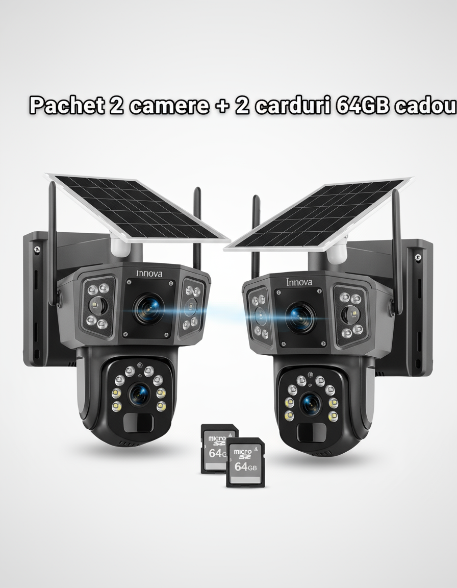 🔒 Siguranta casei tale, oriunde te afli! Camera dubla INNOVA WIFI este solutia profesionala pentru supraveghere inteligenta, combinand tehnologia de ultima generatie cu autonomie extinsa si control direct de pe telefon.